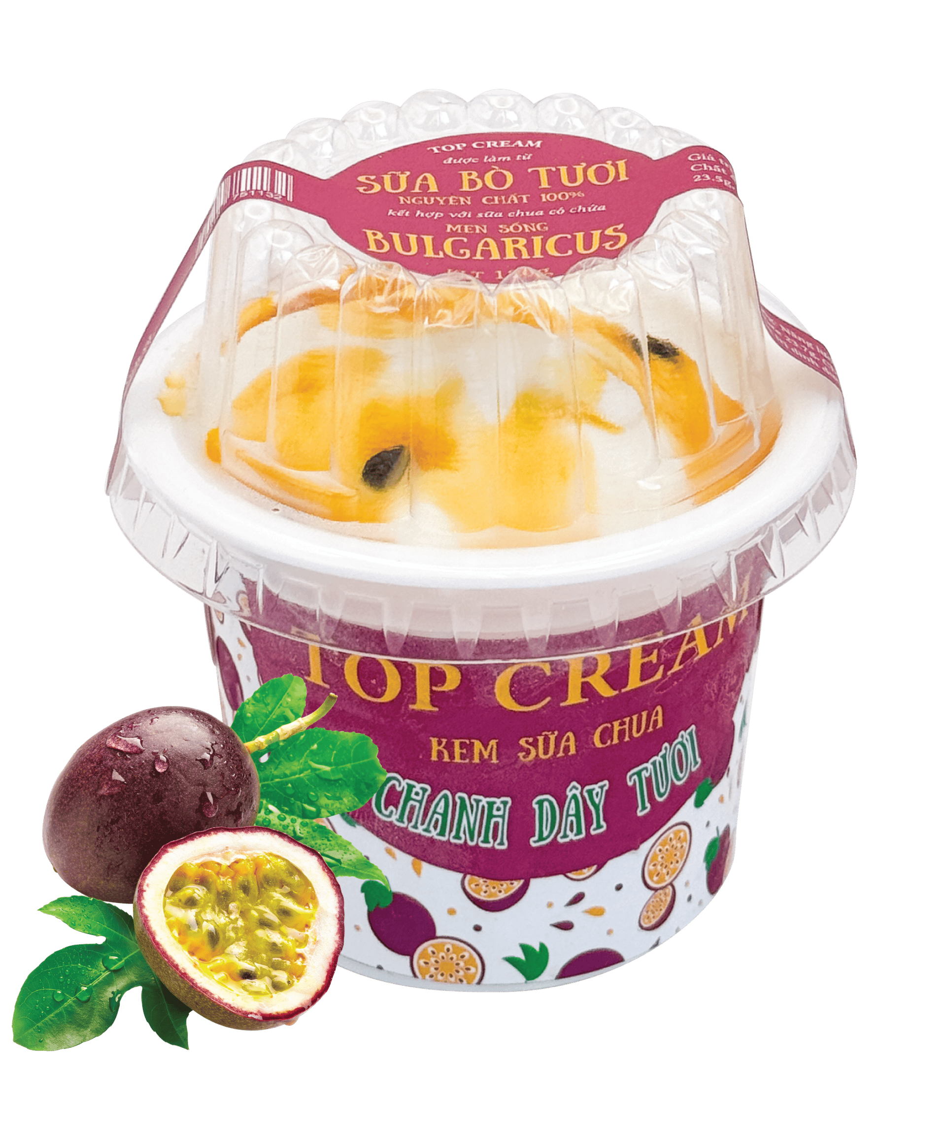 - Kem tươi chanh dây nổi bật với màu vàng cam rực rỡ, điểm xuyết hạt chanh dây đen nhỏ, chua ngọt tinh tế.