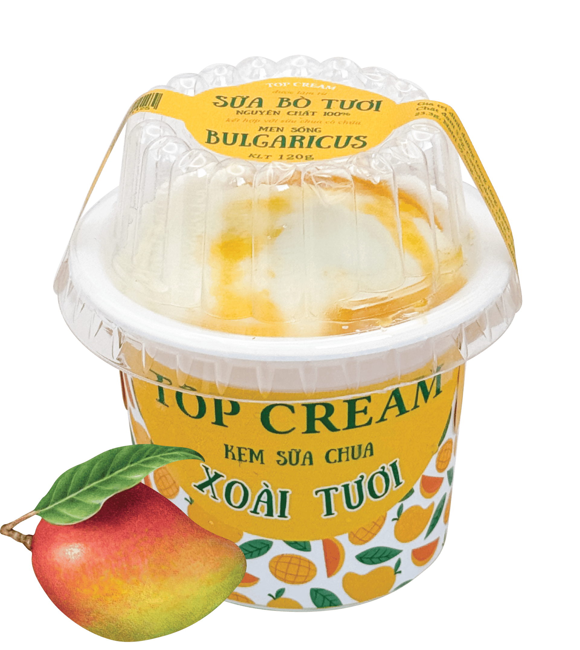 - Kem tươi xoài tỏa sáng với màu vàng tươi, thơm ngon từ những mảnh xoài chín mọng, đậm chất nhiệt đới.