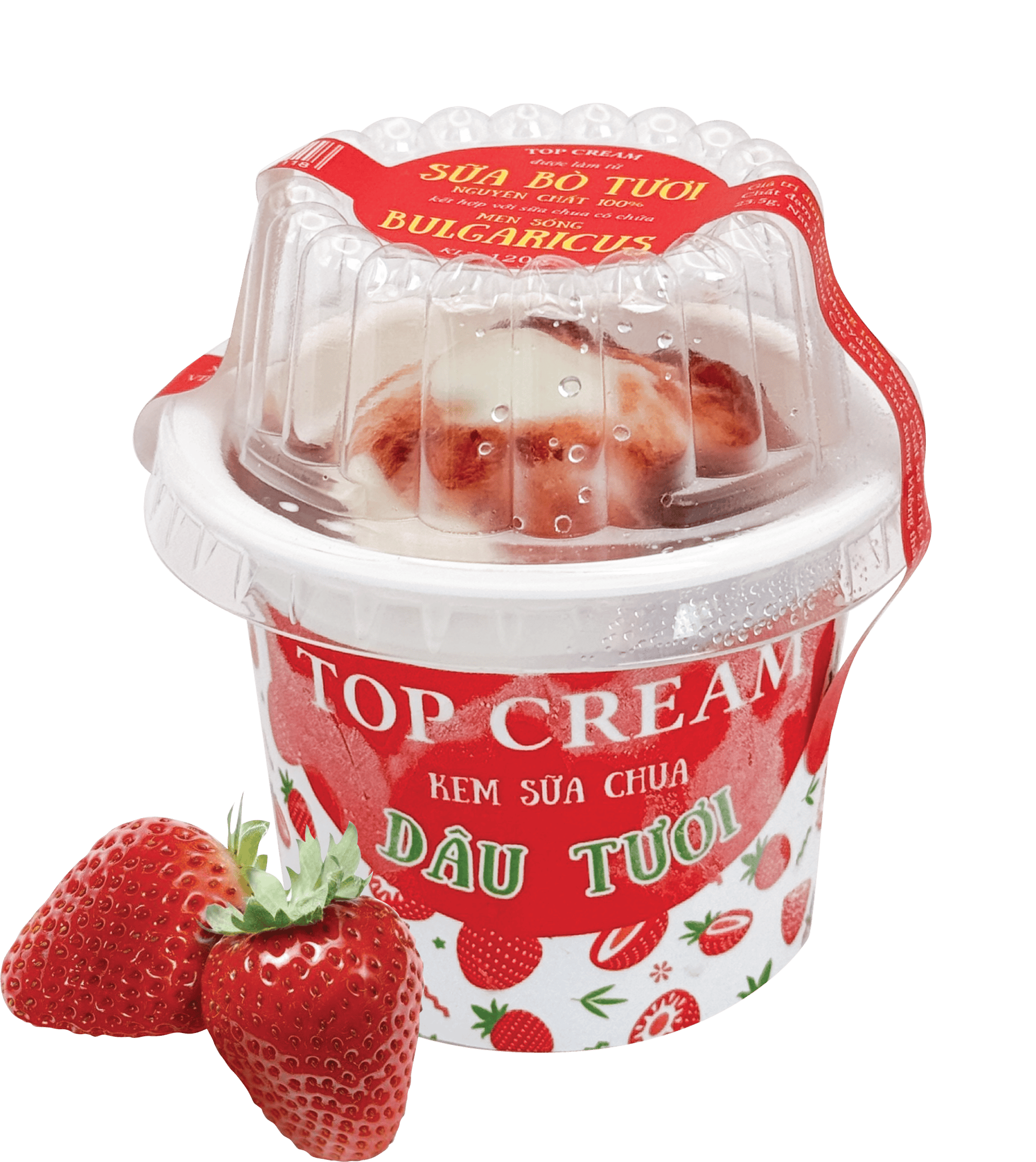 - Kem tươi dâu quyến rũ bởi màu hồng nhạt và những mảnh dâu tươi mọng nước, ngọt ngào tươi mới.