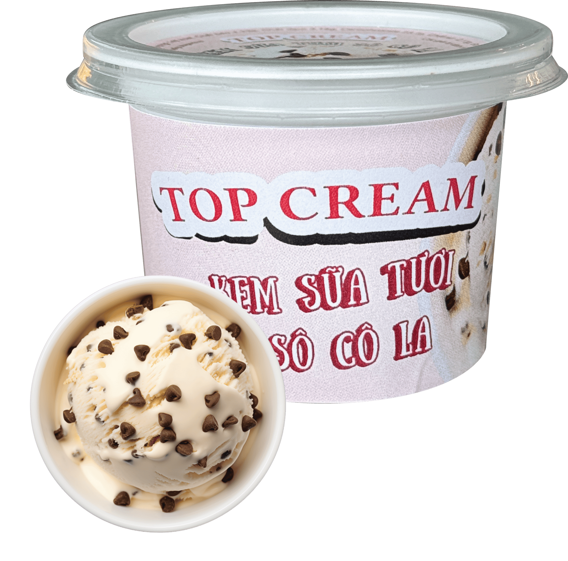 Từng muỗng kem mịn màng tan chảy trong miệng, hòa quyện với những mảnh socola giòn tan, tạo nên một trải nghiệm thưởng thức sang trọng và khó quên.