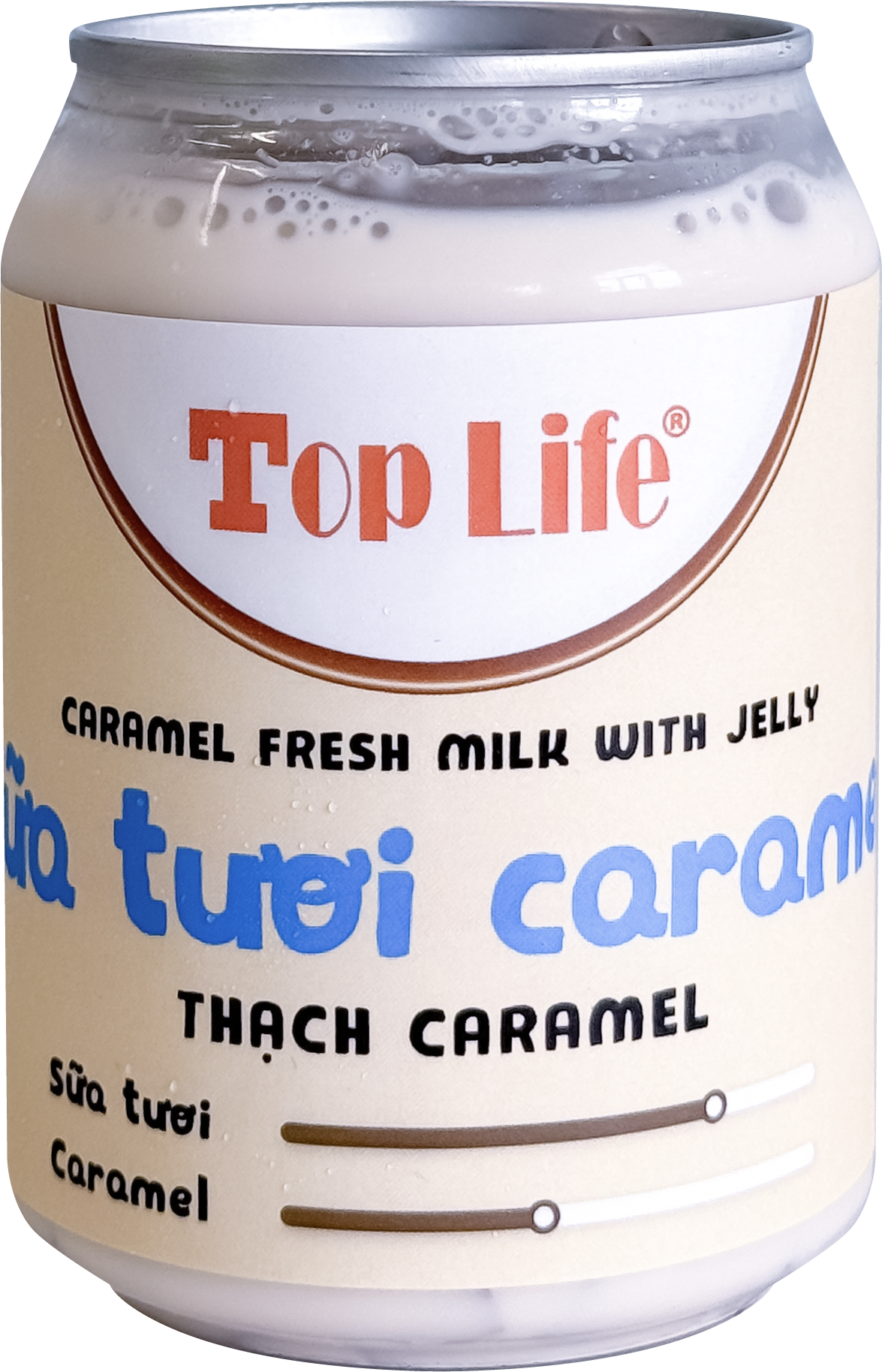 "Thưởng thức sự kết hợp tan chảy và mềm mịn của Sữa Tươi Caramel Thạch Caramel."